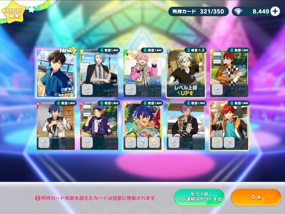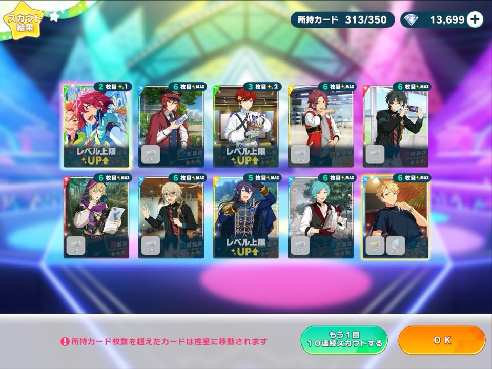 星3で颯馬くんきたり星4でアドニスくん維吹くんきて、ファン数上げたいアイドルがきてくれて嬉しい。