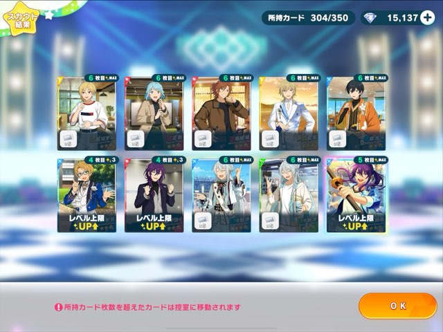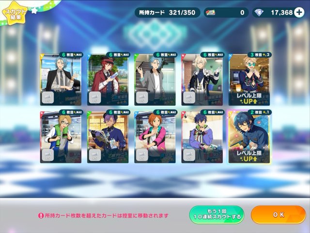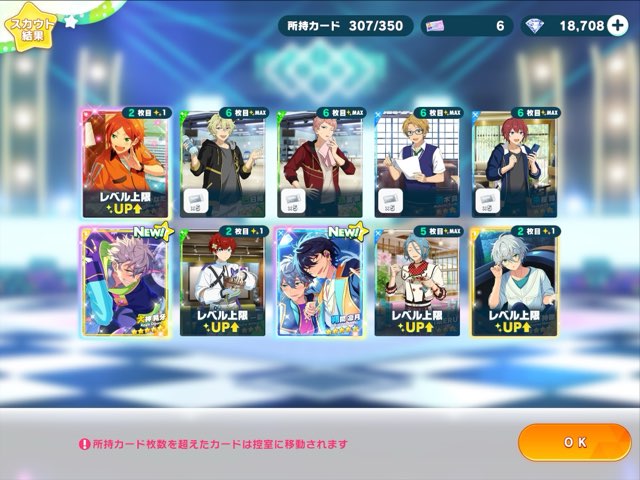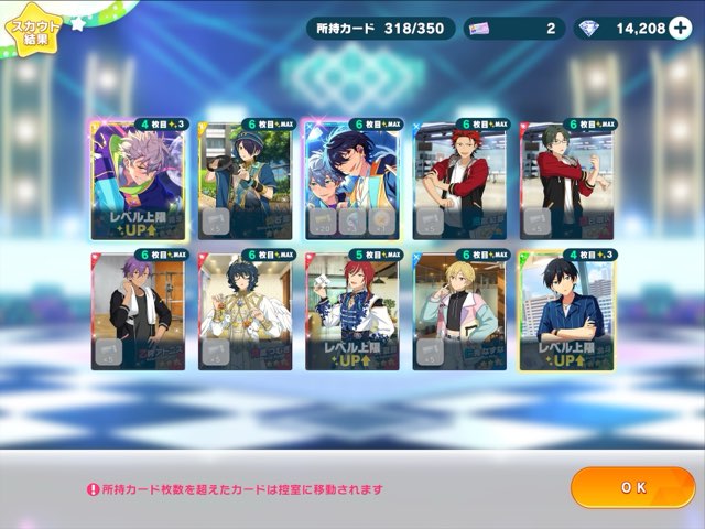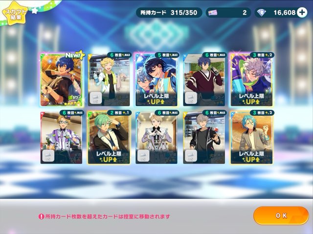 他に確定じゃない星5は弓弦と瀬名がきた(画像省略)