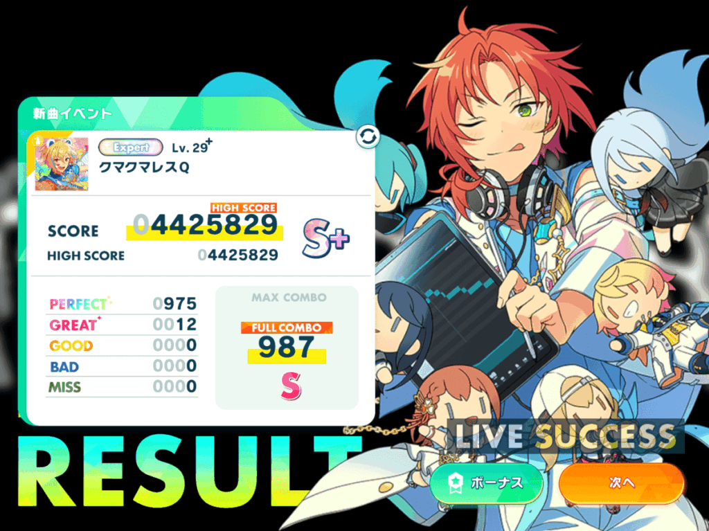 これイベント中だったんですが奇跡のサポート使わずフルコンボ!great12です!