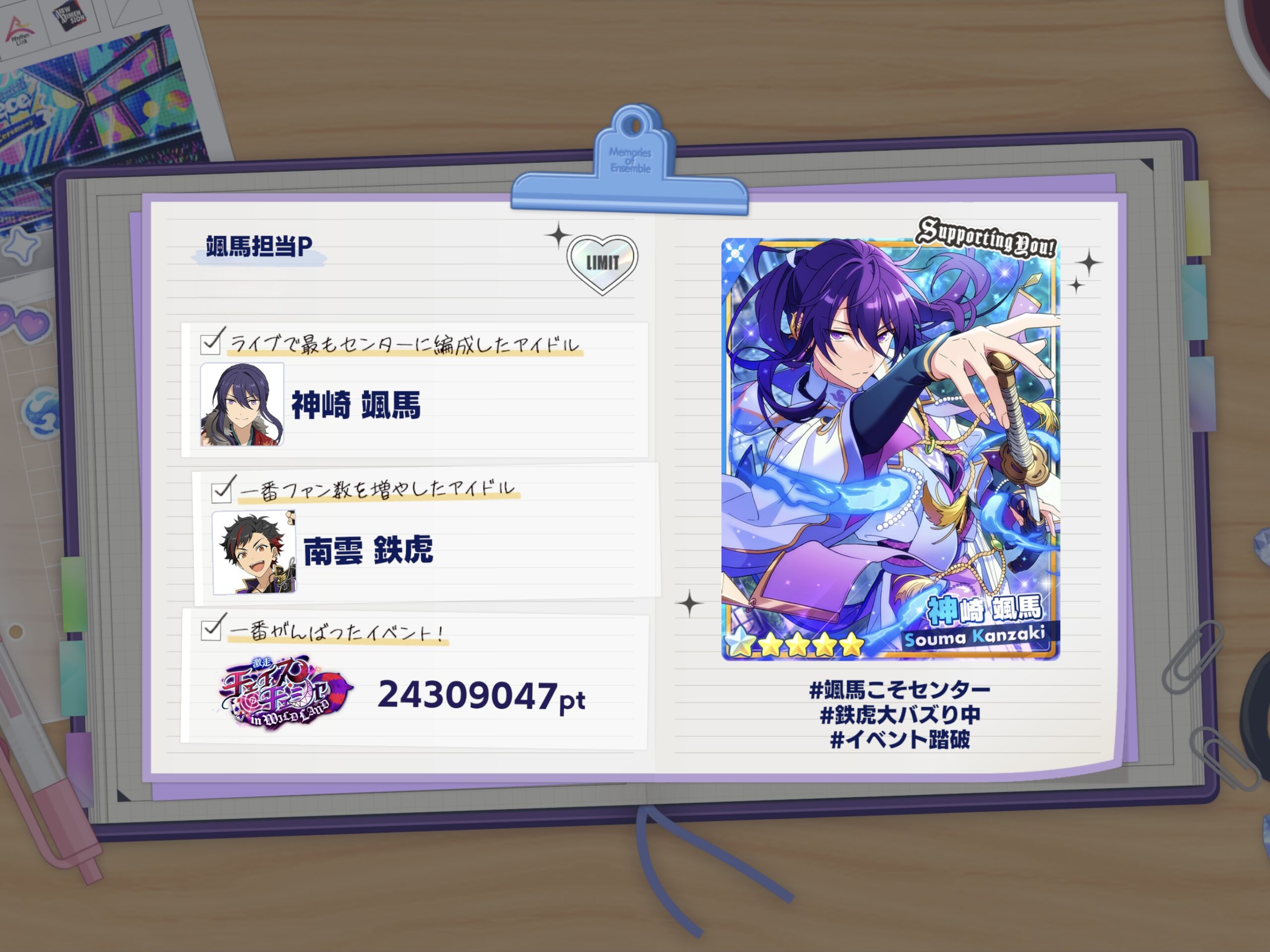 夏鳥の詩 -サマーバード-のイベントの頃はまだあんスタやってなかったので、初めての颯馬くんイベントだったので頑張った。