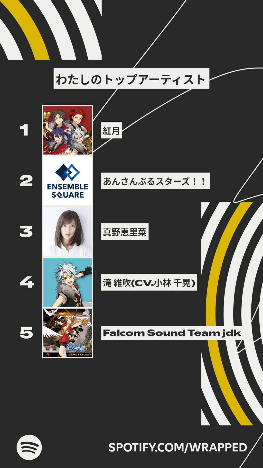 2位あんスタ全体3位真野ちゃん4位維吹くん5位ファルコム
