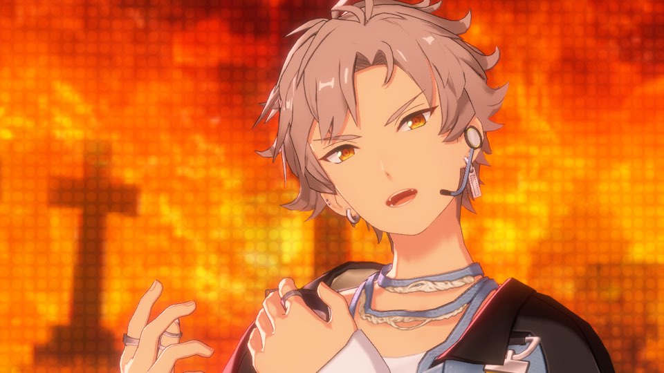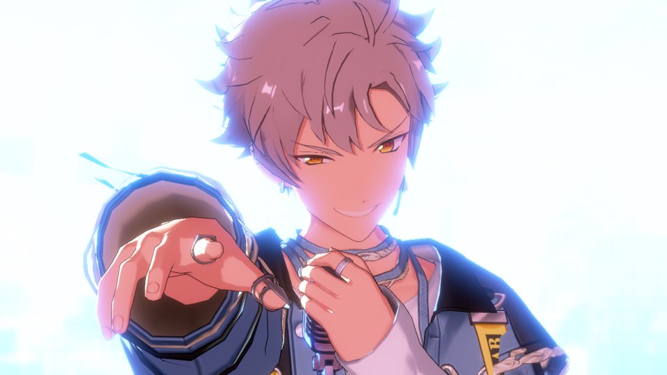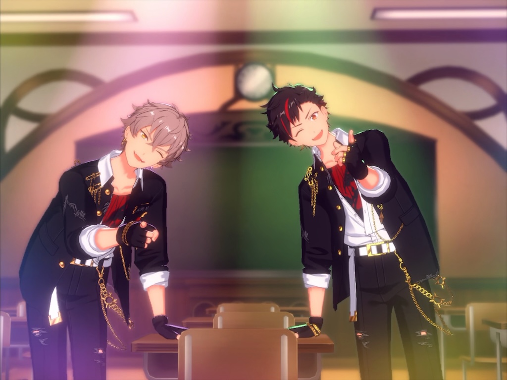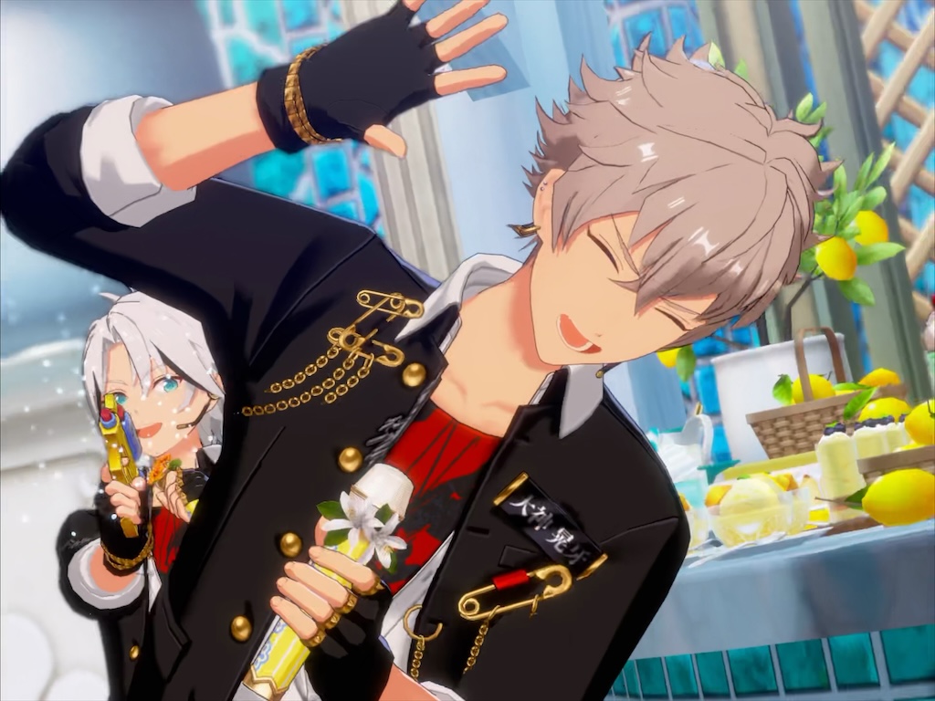 晃牙が低い姿勢から飛び出していく一瞬。あんスタ公式動画MVだと0:25~あたり。