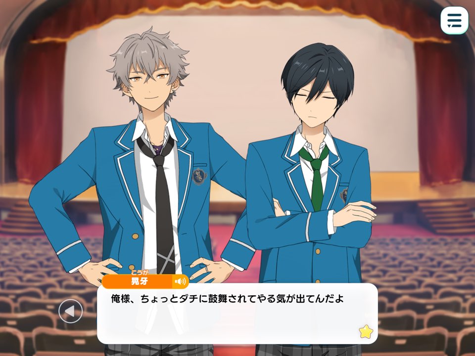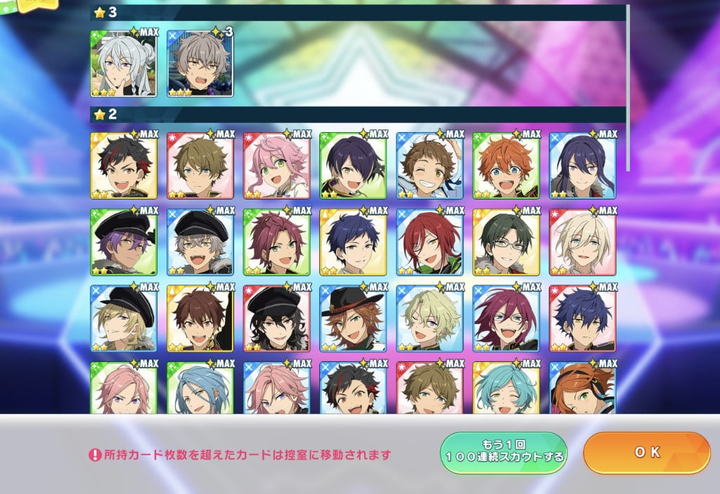 推し全員1着はSCR欲しいな。残り晃牙とアドニスくんとジュンくんか。